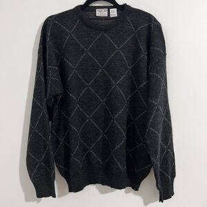 Giorgio Di Firenze Vintage Grey Wool Blend Grandpa Sweater Size L Argyle Diamond