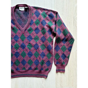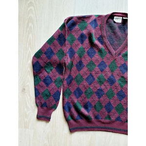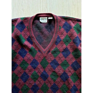 Giorgio Di Firenze Vintage V Neck Acrylic Wool Argyle Diamond Sweater Italy XL