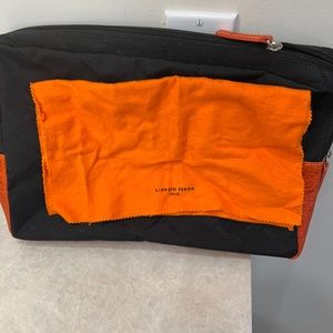 18” X 10”. Excellent condition. Vibrant orange color. Comes with internal bag, polish cloth and large dust cover.