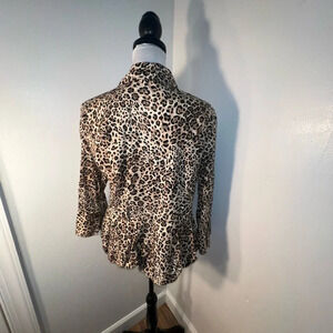 Giorgio Saint Angelo,L, animal print, button front ,elastic gathering at the bottom of the blouse three-quarter length oversized sleeve with buttons 97% cotton 3% spandex bottom half of shirt is fully lined