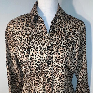Giorgio Saint Angelo, L, button front animal print elastic gathering hem.