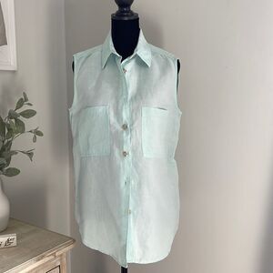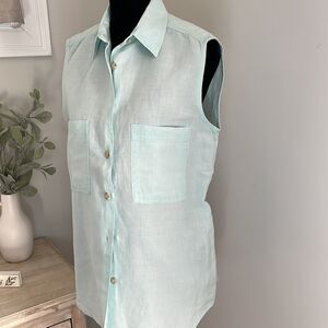 Giorgio Sant Angelo Button down Shirt. Sleeveless. Sea foam green. Size Small.