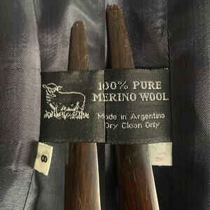 From iconic designer Giorgio Sant’Angelo is a beautiful pure merino wool blazer jacket from the 1990s. Featuring a front upper collar, the jacket is double breasted, and fully lined with patch pockets.
