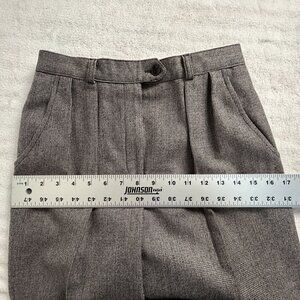 These Giorgio Sant'Angelo vintage trousers offer elegant structure with a soft, breathable feel. Made from 100% pure new wool, they feature a high-rise waist, pleated front, and straight leg silhouette—ideal for career wear, classic styling, or vintage fashion lovers.