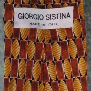 Giorgio Sistina Tie Red Yellow Geometric Print 100% Silk Made in Italy Menswear