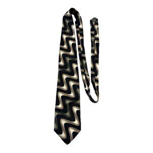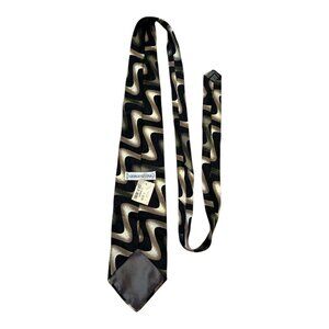 Step into timeless sophistication with this Giorgio Sistina tie, a vintage masterpiece that embodies elegance and Italian craftsmanship. Made from 100% silk, this classic accessory features a striking abstract print in black and gold with flowing wavy patterns. The design captures an air of refinement and adds a nostalgic charm to any wardrobe. Perfect for formal occasions or making an everyday style statement, it delivers both quality and style.