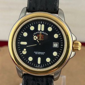Vintage Giorgio of Beverly Hills Ca, now a branch of a major Brand Swiss Made Luxury Watch Original Black 8 inch Leather Strap/Buckle Water Restraint to 100 Meters High End 7 Jewel Swiss Quartz Luxury Watch Movement