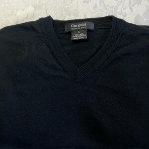 Giorgiolini Italian Extra Fine Merino Wool V-Neck Sweater Black Mens Large