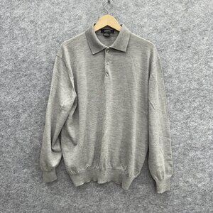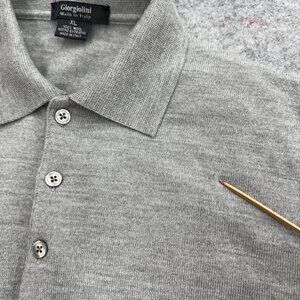 Giorgiolini Men's Polo Sweater 100% Wool Made in Italy Merino Extrafine Gray XL