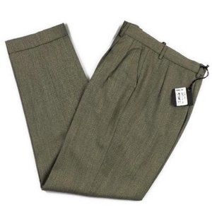 Giorgio's of Palm Beach Vintage Green Micro-Stripe Pleated Wool Luxury Dress Pants Womens Size 6, 42