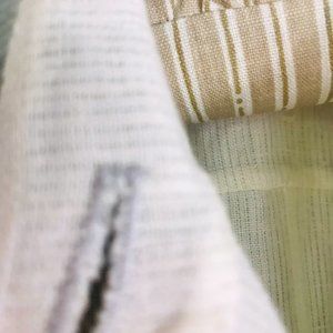Lovely Italian linen blazer from Giorgio's of Palm Beach. Goes with everything - a summer staple! Elegant, classic styling will make this a wardrobe go-to for years to come. Slimming, soft neutral taupe and sky blue stripes underlay subtle pinstripes. Lightly lined with white tonal, open-weave linen. Slit front-seam pockets add functionality without the bulk. Drop hem is cut higher on sides for svelt profile and coverage where you want it. Perfect condition. New with tags.