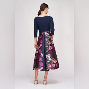 This elegant navy dress features a stunning floral design, perfect for any occasion. The rich colors and sophisticated style make it a must-have addition to your wardrobe.