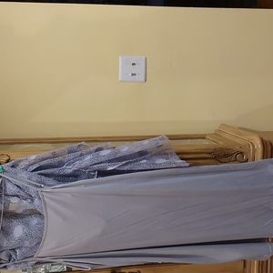 Ladies 2pc Dress with/Underlay - Grey Lace - Sz M - 43" Length- 100% Polyester - Long.Fluted Bottom Sleeves - $25