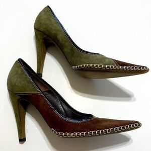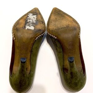 Great condition. Sole has minor wear. Color: green/brown Suede. No scratches or stains.
