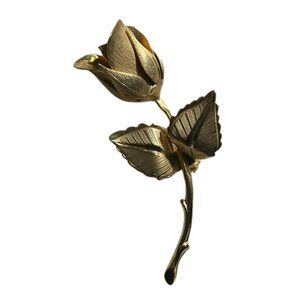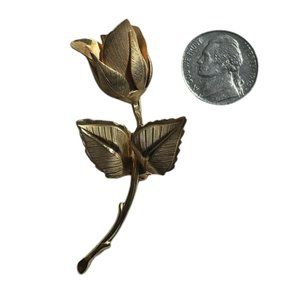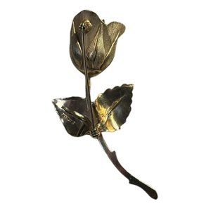 Giovanni rose long stem rose gold tone brooch pin. Signed Giovanni on the back.