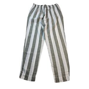 Giovanni beach lunch linen blend green striped w/ pockets and tie waist NWOT M