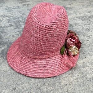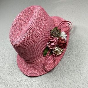 Giovannio Florence New York Pink Straw Floral Hat Spring Summer Church