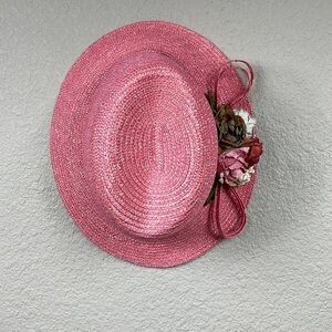 Giovannio Florence New York Pink Straw Floral Hat Spring Summer Church Derby