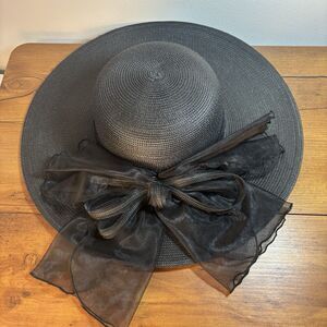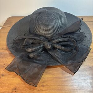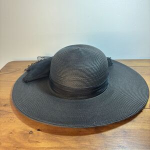 Giovannio NY Black Wide Brim Accented Church Derby Hat Large Bow