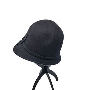 Giovannio Womens Black Wool Felt Cloche Hat Ribbon Flower Bow Retro Roaring 20s