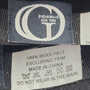 Elevate your outfit with this elegant cloche hat by Giovannio, crafted from 100% wool felt. Its timeless design and ribbon accent add sophistication to any wardrobe.