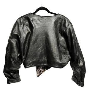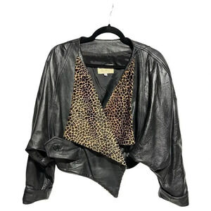 Giovinezza Moda Rocco D’Amelio BLACK LEATHER 80s Jacket Leopard Calf Hair Size M