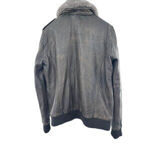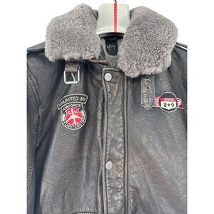 Gipsy Mens Leather Aviator Jacket Sherpa Collar Patches mens large