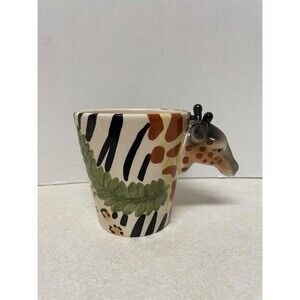 Giraffe 3-D Ceramic Mug Beautiful Giraffe Head Handle 12oz Zoo