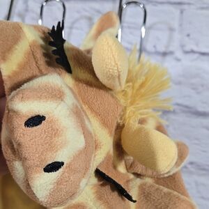 Design: Giraffe, soft ears, embroidered details, felt eyelashes, furry yarn mane