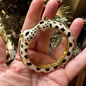 Giraffe Head Hinged Bangle Bracelet Gold Tone Enamel Safari Animal