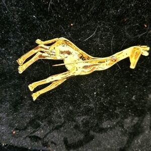Precious giraffe pin with black stones surrounded by rhinestones approximately three inches