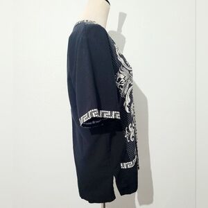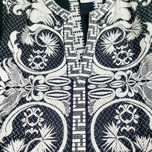 Giras Black White Embroidered Tunic Top Greek Style 50/50 Cotton Viscose Size L