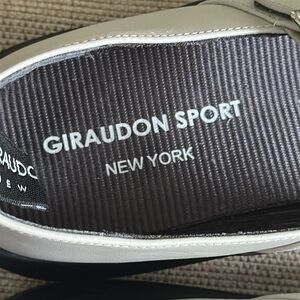 Giraudon Sport shoes, specifically a white Mary Jane style with a black sole. The shoes feature a buckle strap and perforations on the upper. The brand name "Giraudon" is visible on the inside of the shoe along with "New York". Thick chunky rubber sole.