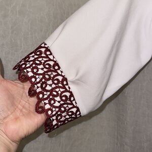Girl 14-16 Embroidered White Burgundy Tulle Lace Short Sl Folk Formal Dress