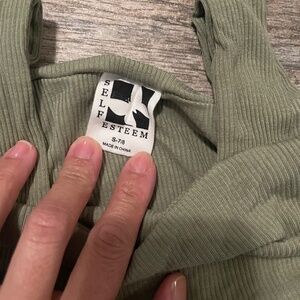 Olive green off shoulder long sleeve and moon and stars worn knees pants