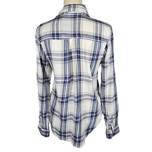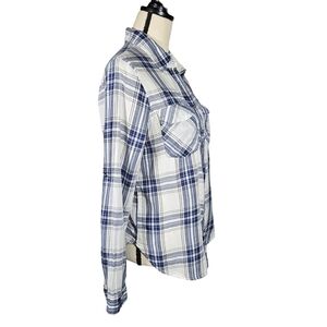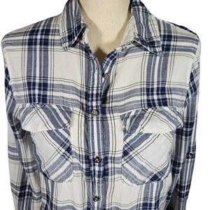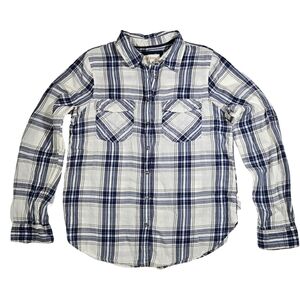 Girl Crazy Juniors Classic Long Sleeve Button Down, Blue/White Plaid, Medium