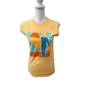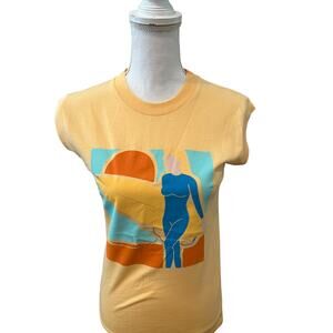 Free People Collaboration Surfer Girl 70s art Muscle Tank Top Shirt Retro Mod Graphic design