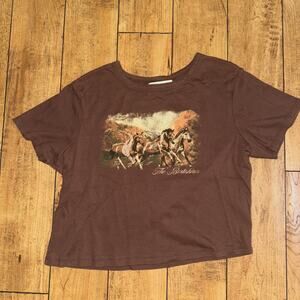 The Girl Dangerous Graphic T-Shirt in Brown, size XL, is a stylish and unique addition to any woman's wardrobe. Featuring an art and horse theme, this regular fit t-shirt is perfect for those who want to make a statement. The brand, Girl Dangerous, adds a edgy touch to this wardrobe staple, making it a standout piece for any outfit. Perfect for those who appreciate art and want to add a touch of personality to their look.