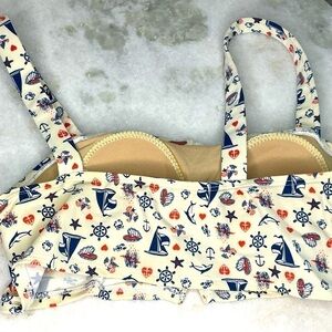 Girl Howdy bikini top only sz 8 retro vintage pinup style sailing print