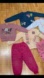 Vibrant kids sweatshirt and jogger set featuring fun graphics. Includes pink, navy, gray, and tan colors. Size: 4-5 years girls