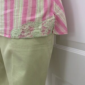 Go out in style with this striped pink and green set. Perfect for a date night or Spring/Summer event