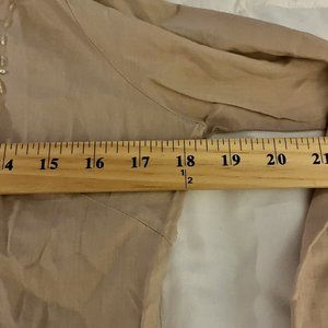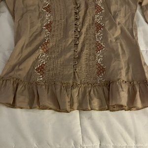 Girl Krazy TAN RUFFLEBUTTON FRONT BEADED EMBROIDED COLLARD V-NECK RUFFLE SIZE S