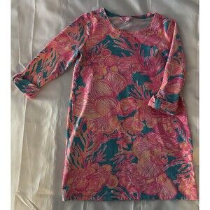 Girl Lilly Pulitzer Little Devon Dress Floral Marine Pink Blue Sz XL (12-14)