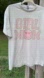 Gildan t-shirt in cream. Features subtle pink accents. Soft and casual.