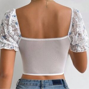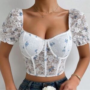 Girl Puff Sleeve Sweetheart Bustier Corset Embroidered Floral Mesh Top ✨✨🔥🔥