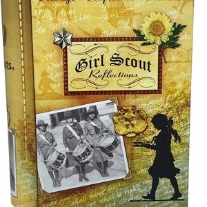 4-Girl Scout Reflections- picture of early GS with other graphics on front, old photo on spine, info about GS with early photos/graphics on back, continues on the underside of cover/lid. Superficial scratches and crease on lid
