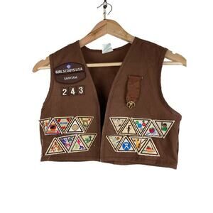 Girl Scouts Size S Plus Brown Vest with Patches and Pins 2002