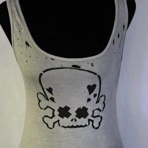 Girl Skull Handmade Distressed Destroyed Ripped Altered Trashed Women's Shirt