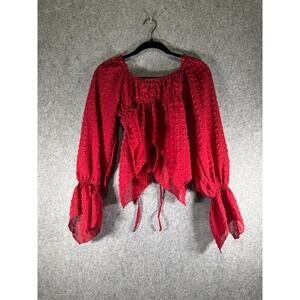 Girl Soul Blouse Women Medium Red Ruffle Textured Romantic Regency Soft Feminine