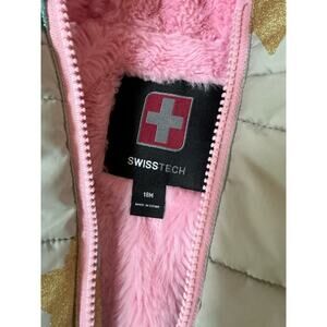Swiss Tech Girls 18 Month Gray & Pink Puffer Jacket Lined Glitter Stars Winter. Condition is Pre-owned.